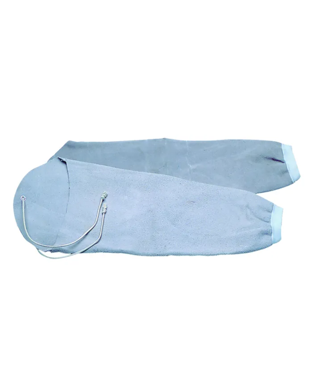 Manguito de serraje vacuno para soldador para proteger el brazo desde la muñeca a la parte superior del brazo. Puño de goma fabricado en nylon de 46 mm de ancho y sujeción mediante cuerda en la parte superior.
