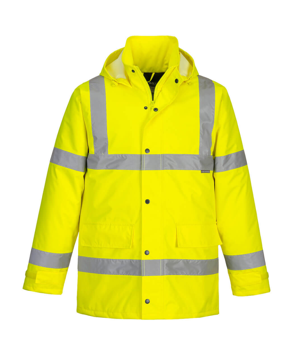 Chaqueta Winter Traffic PORTWEST S460 totalmente impermeable con las costuras encintadas evita la penetración de agua. Robusta, funcional y dotada de todas las características. Cumple EN342 Protección contra el frío, certificado hasta -36°C. Disponible de la talla XS la 6XL.