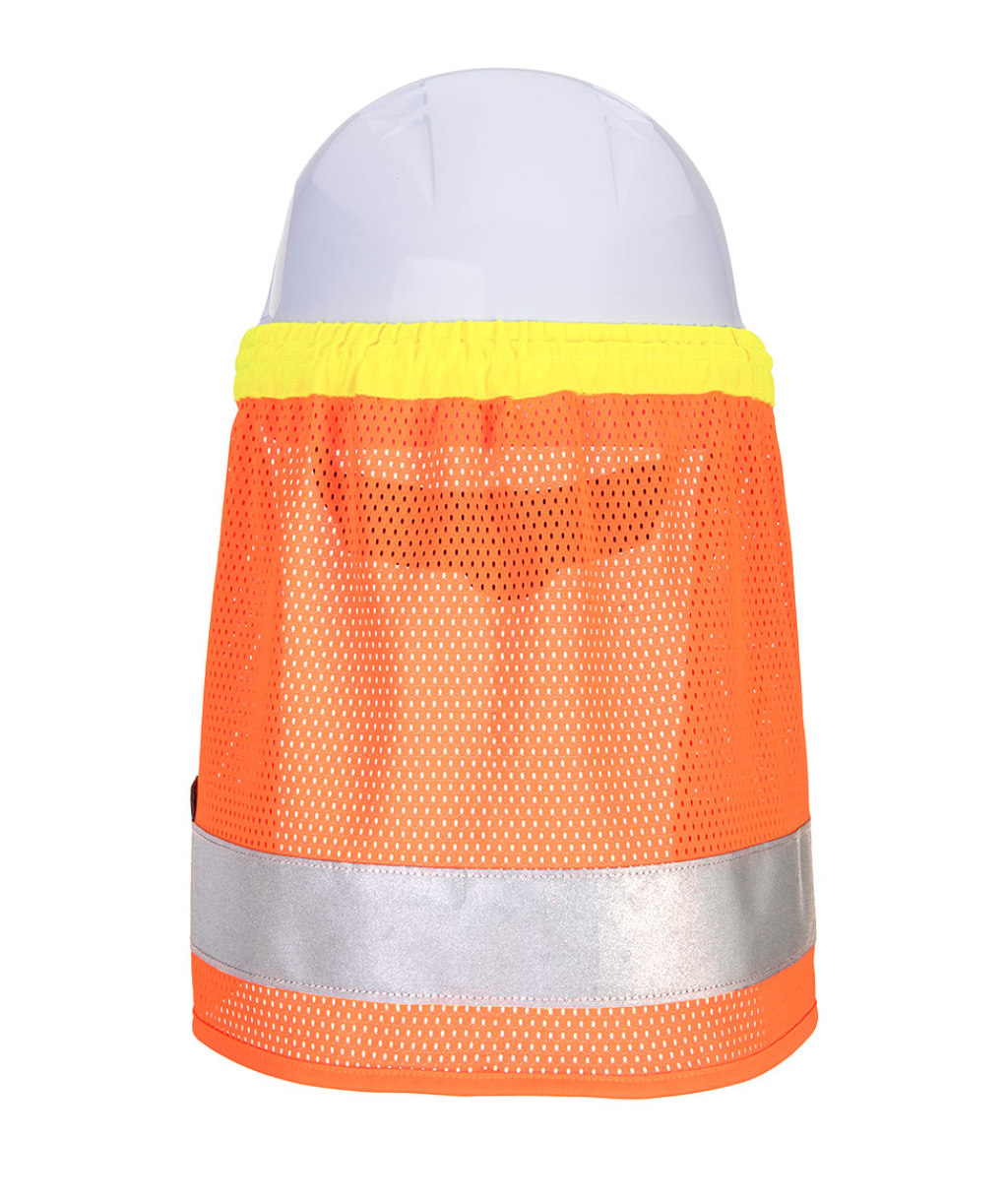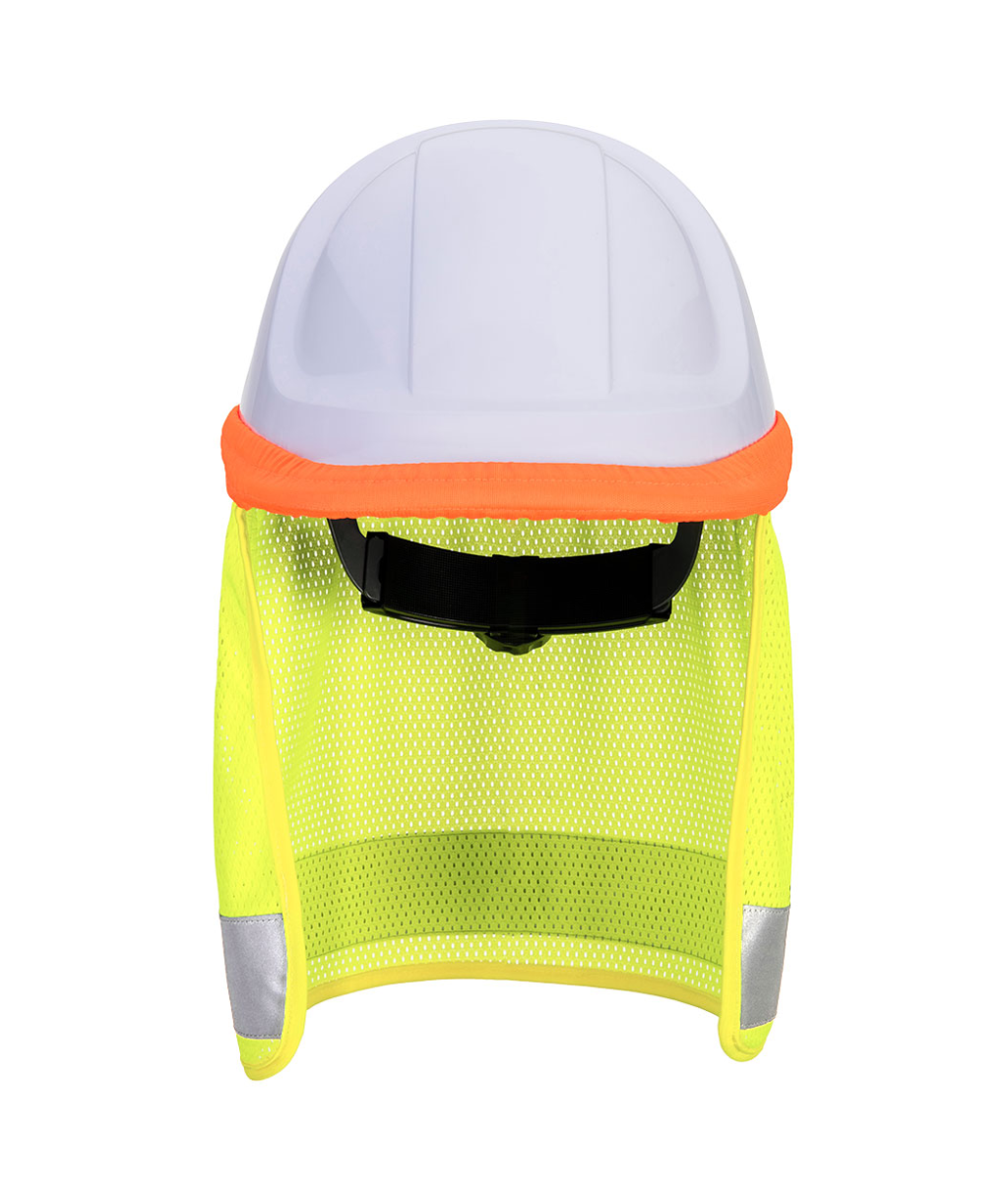 El faldón HA17 es un protector de cuello de alta visibilidad ideal para trabajar al aire libre con casco de seguridad. La banda elástica ayuda a que el faldón se ajuste perfectamente a la parte superior de la mayoría de los cascos de seguridad y se mantenga en su sitio.