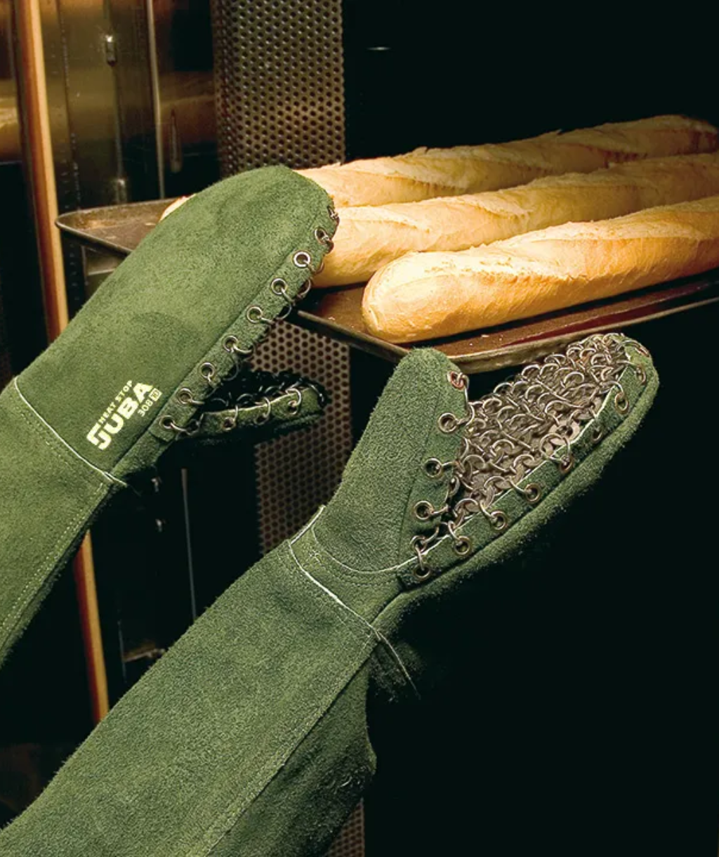 Estos guantes JUBA 308 de serraje ignífugo con anillas metálicas se caracterizan por su una óptima resistencia al calor por contacto (500ºC durante 15s). Cuenta con un forro interior en la palma de Nomex para una alta resistencia al calor. Su uso está recomendado para hornos, manipulación intermitente de objetos calientes hasta 500ºC y panaderías. 4 unidades disponibles T.10.